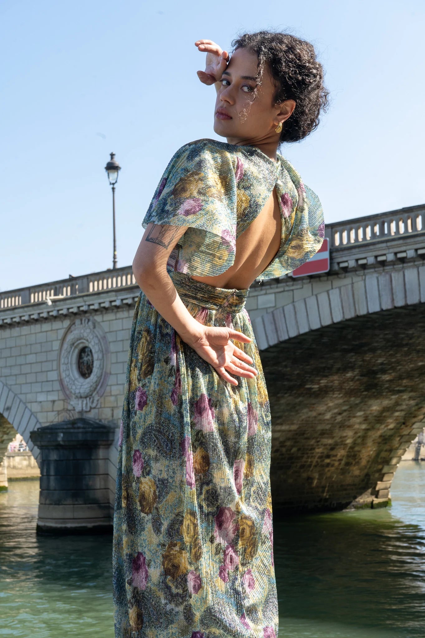 - Deep V-neckline with flattering empire waist for a feminine silhouette
